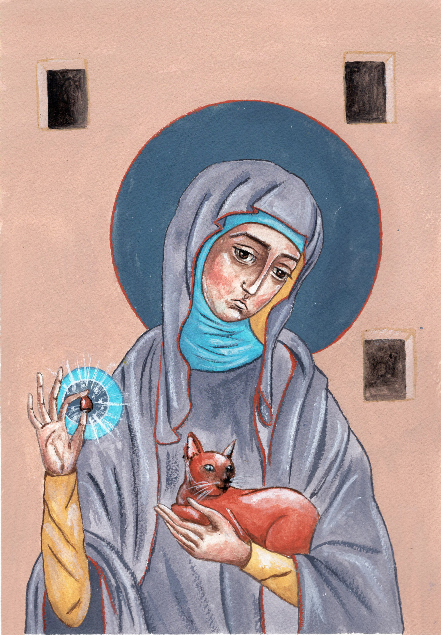 Autorska praca inspirowana ikoną przedstawiającą Julianę z Norwich.