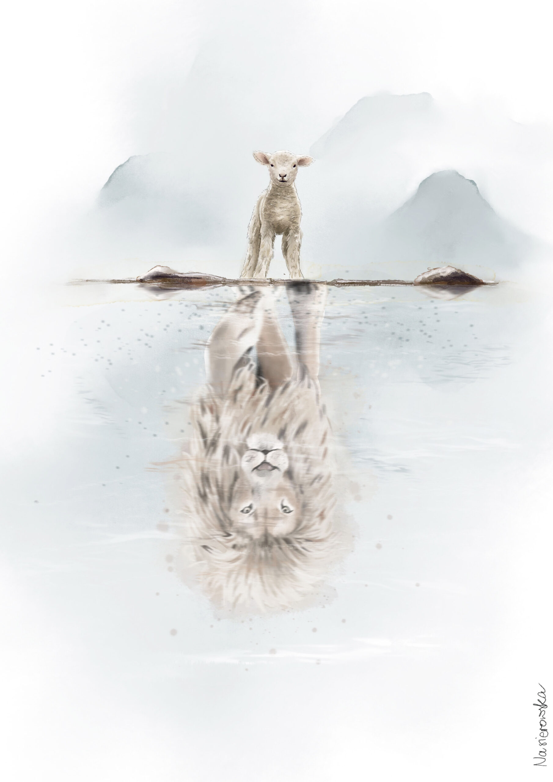 Wydruk autorskiej pracy cyfrowej w jakości fine art, na matowym papierze o gramaturze 300 gsm z wyraźną fakturą.