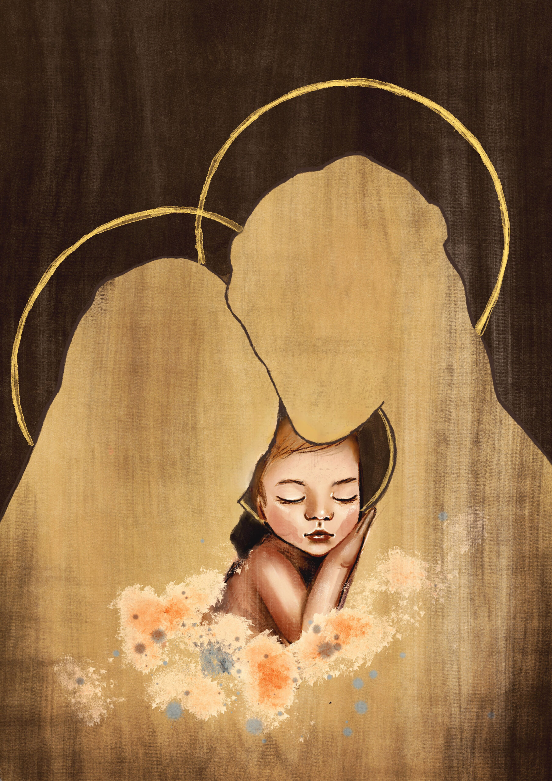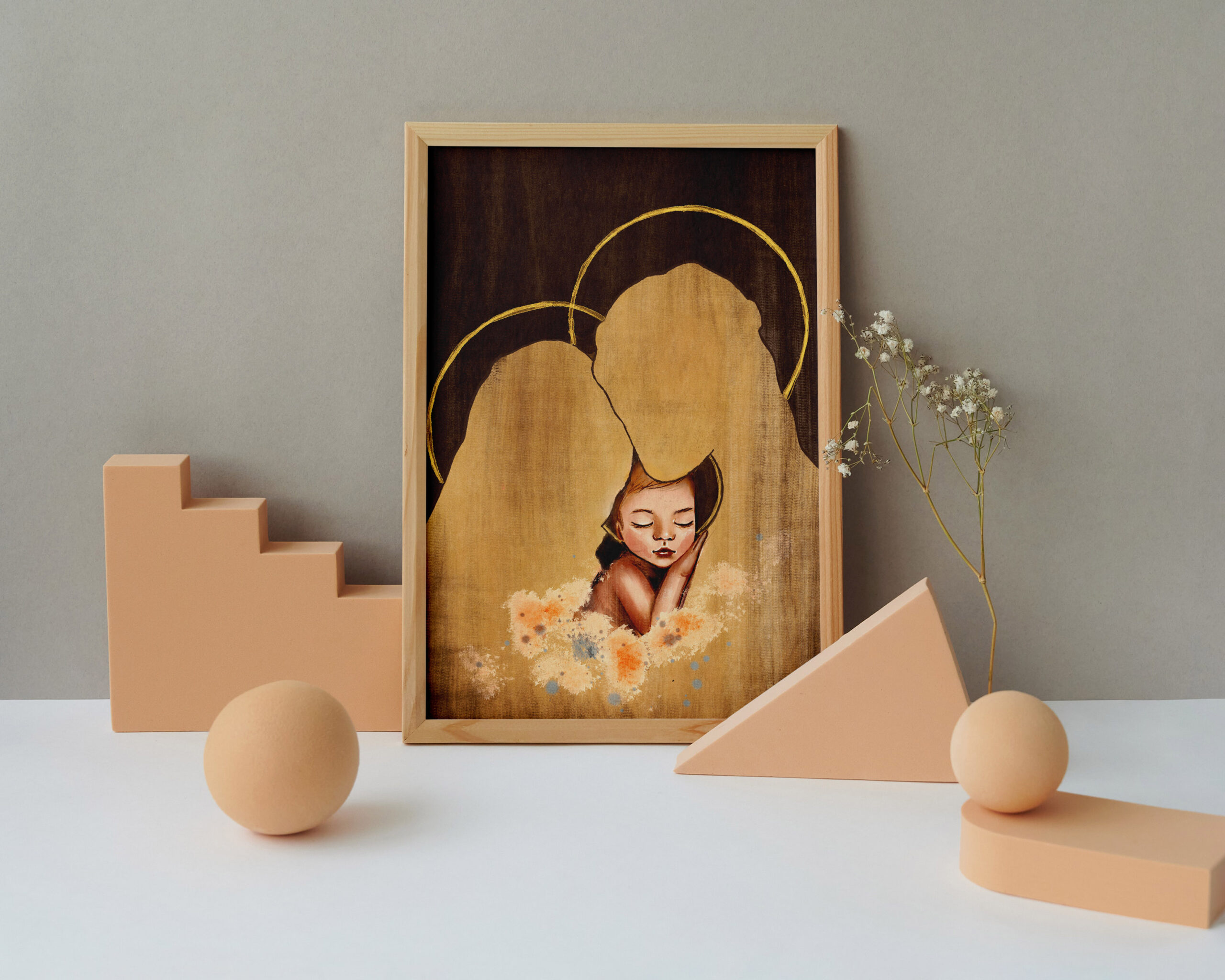 Wydruk autorskiej pracy cyfrowej w jakości fine art, na matowym papierze o gramaturze 300 gsm z wyraźną fakturą.